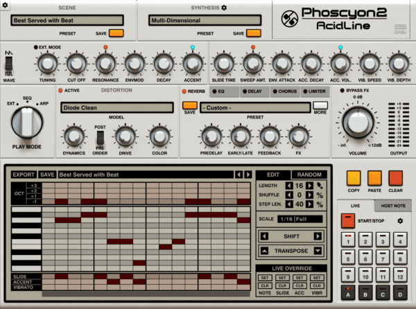 🎤 Live Override mode for real-time accents, slides, and vibrato without overwriting sequences